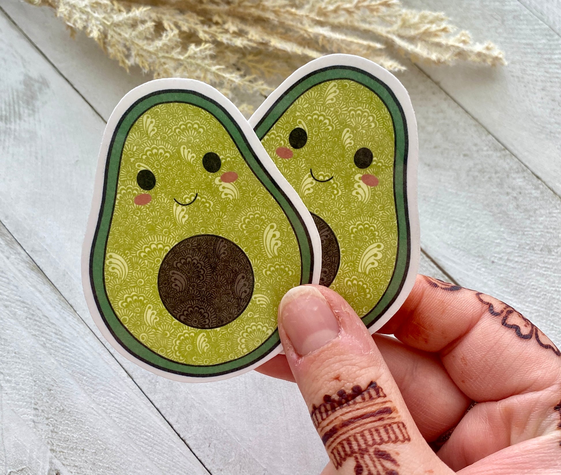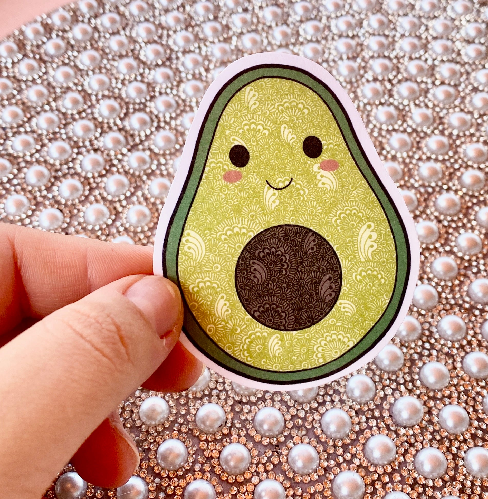 Add some fresh and adorable vibes to your belongings with this charming floral avocado sticker! Featuring a cute, smiling avocado with a unique and intricate floral pattern filling its green flesh and a contrasting patterned pit, this sticker is perfect for anyone who loves avocados, cute food, or has a passion for plants and unique designs.