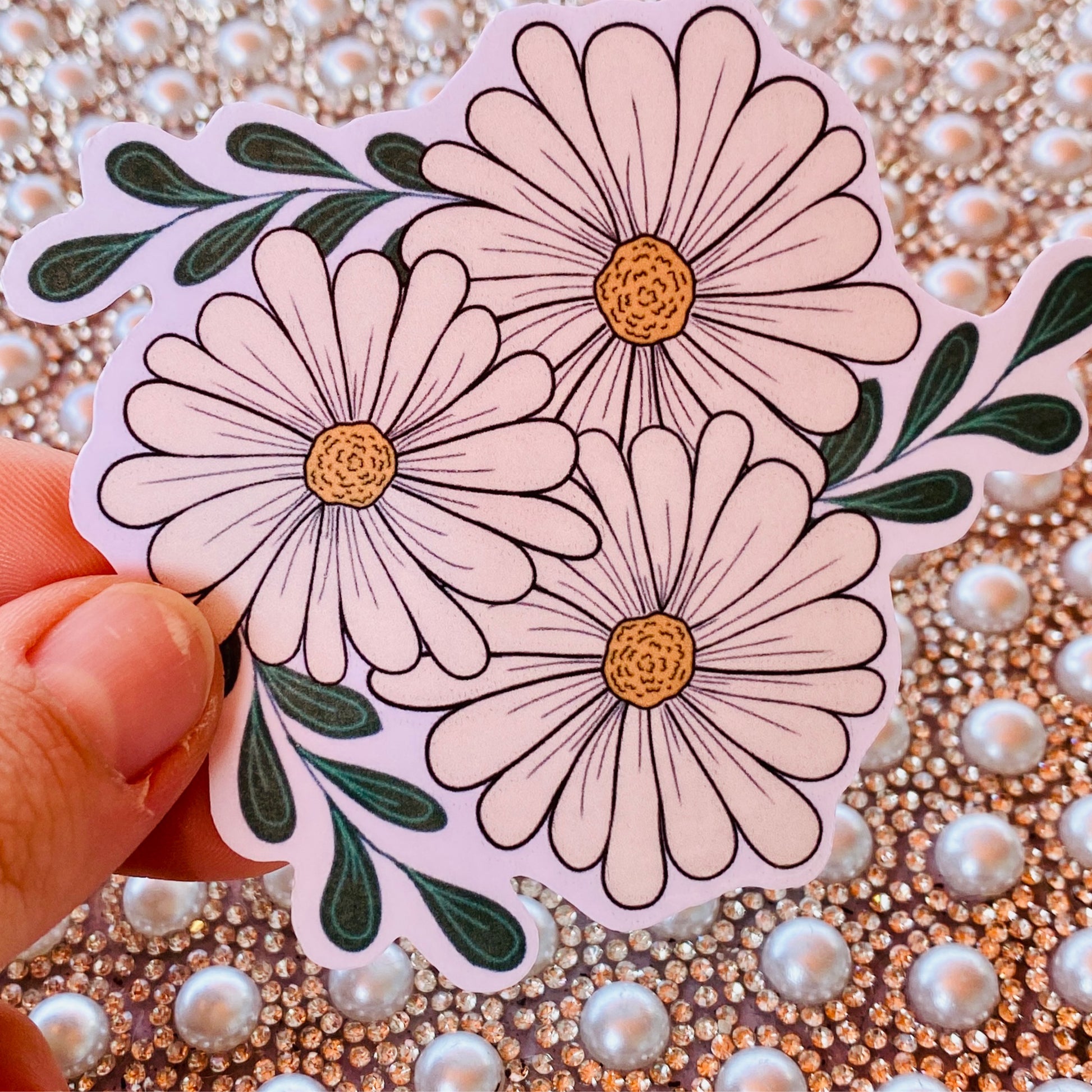 Add a touch of simple, cheerful charm to your favorite items with this beautiful boho daisy sticker. This hand-drawn design features a trio of classic daisies with a rustic, earthy feel, surrounded by elegant green leaves. It’s perfect for bringing a little bit of nature's happiness to your everyday!