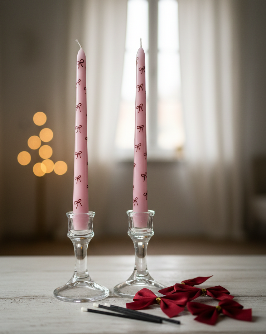 Hand-Painted Bow Taper Candles