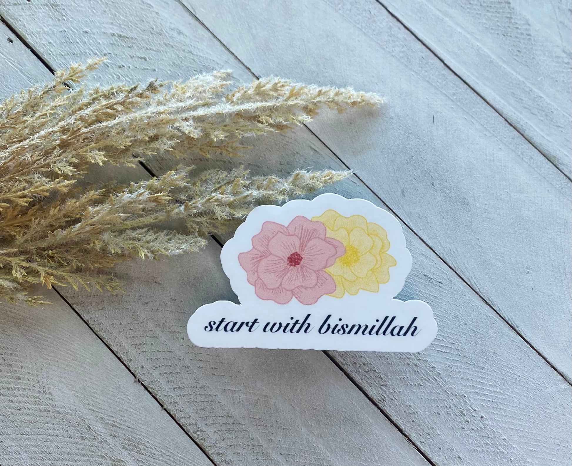 This Start With Bismillah sticker is printed on vinyl sticker paper and laminated to improve durability and protect against water. These stickers can be used as decals on notebooks, laptops, or water bottles.